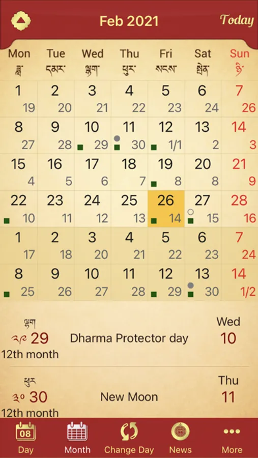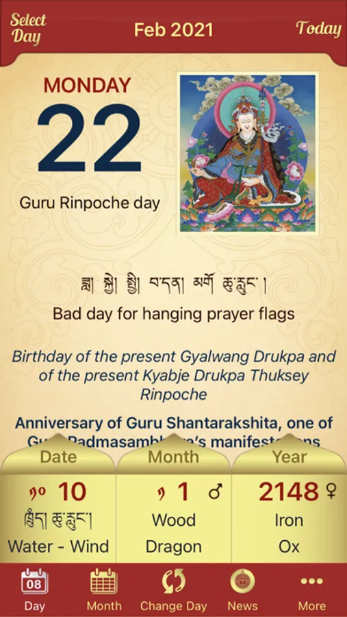 - Sacred days of Medicine Buddha, Amitabha, Guru Padmasambhava, Dakinis and Dharma Protectors