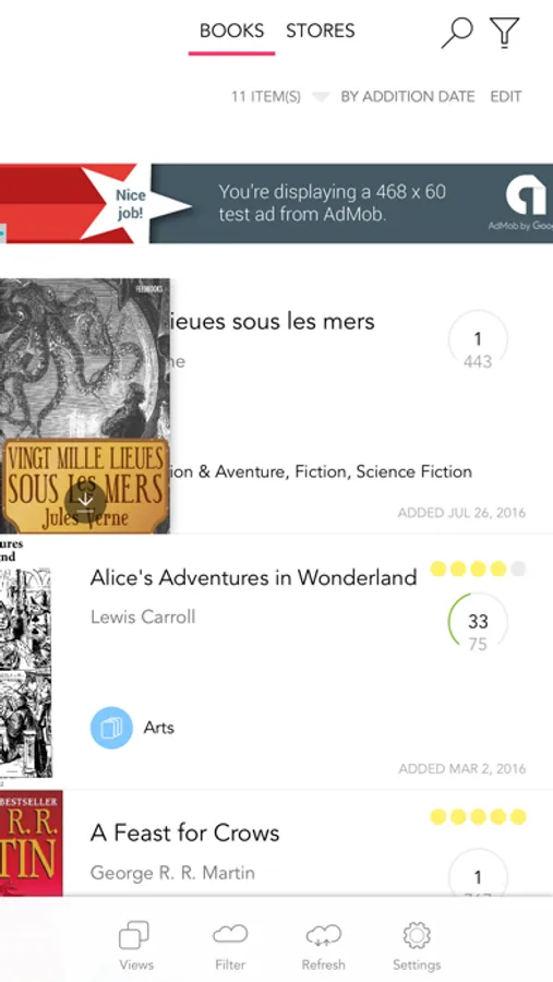 - Synchronized bookshelves: Switch between your phone and tablet and always find your books, reading positions, collections, tags, ratings, bookmarks, in their most recent state.