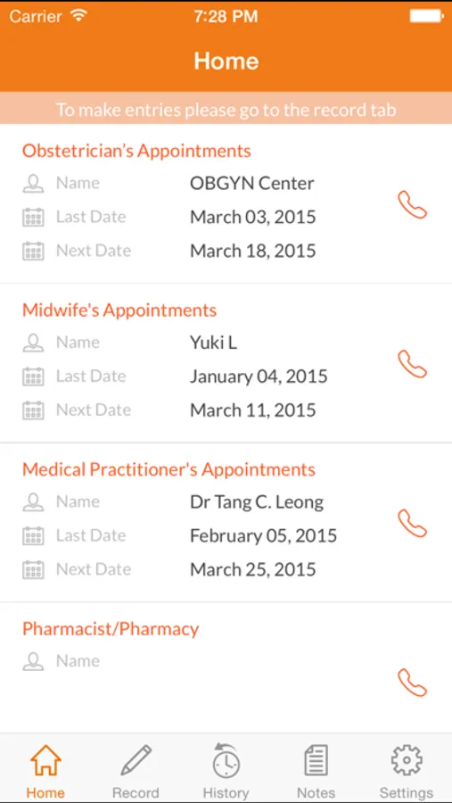 • This app helps you with the following common medical appointments during your pregnancy: