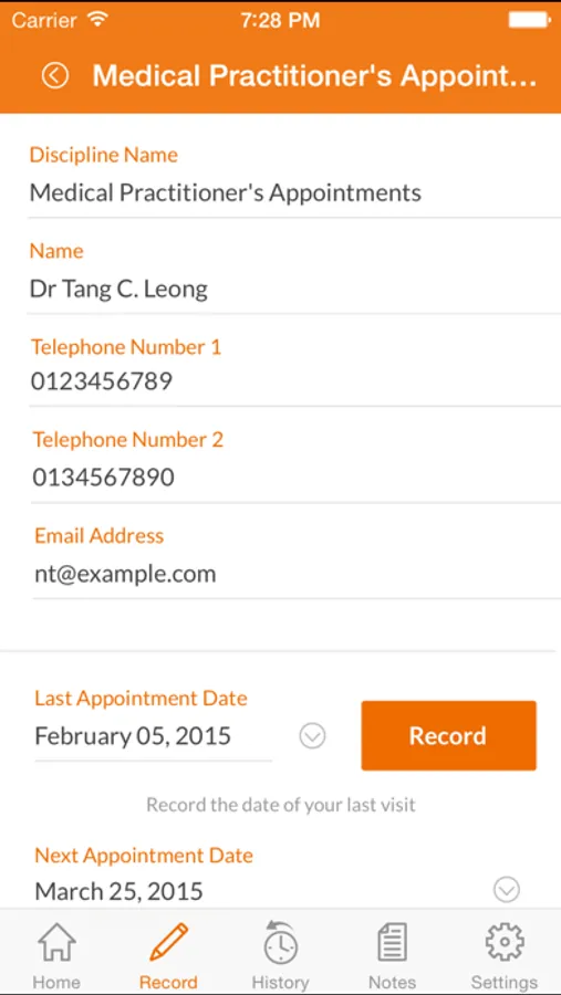 • You can create your own medical appointments and personalise them for you, e.g. for your Dentist, Paediatrician, Anaesthetist, Dietician, Ultrasonographer or Physiotherapist.