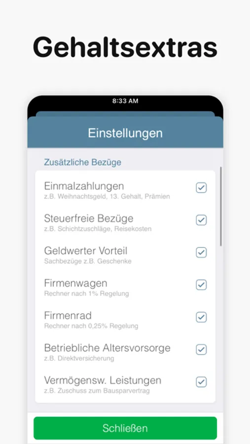 Mit Bruno kannst du dein Gehalt mit verschiedene Einstellungen vergleichen und er funktioniert auch Offline. Deine Daten werden nicht ins Internet übertragen.