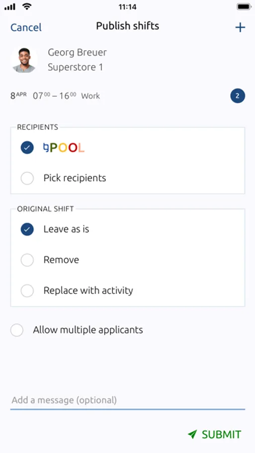 · Publish vacant shifts straight from the app to a pool of subscribers