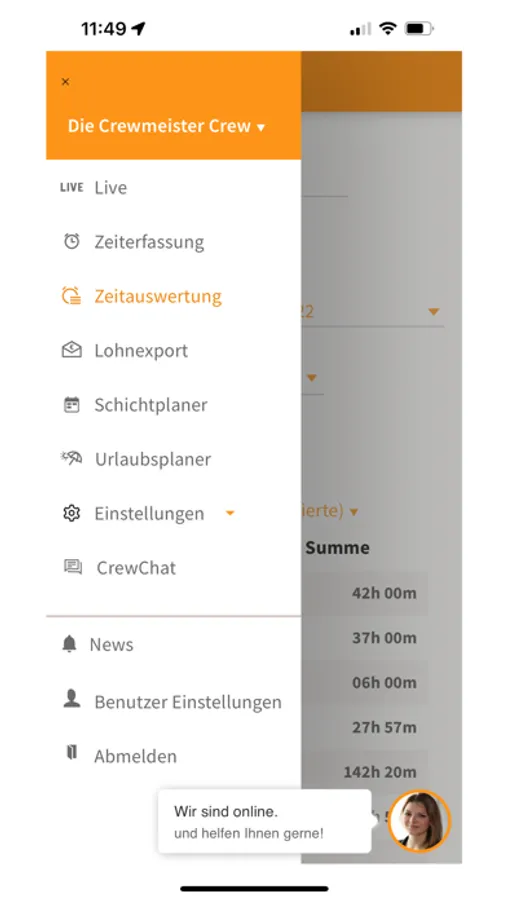 For mobile time tracking, we recommend to use the App "Crewmeister for Employees"
