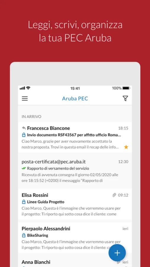 Aruba PEC è l’applicazione gratuita di Aruba, che consente una gestione comoda e semplice delle caselle PEC anche da smartphone e tablet.