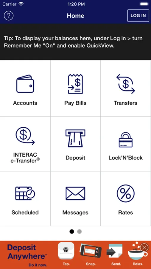 View account balances without logging in when QuickView is enabled.