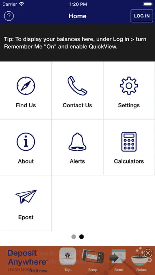 To take advantage of the full functionality of this app, you must already be registered and have logged in to online banking. If you are not an online banking member, you can still use the Branch/ATM locator, Rates and our Contact Us information.