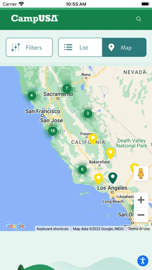 Search hundreds of top-rated campgrounds nationwide on the CampUSA™ App!