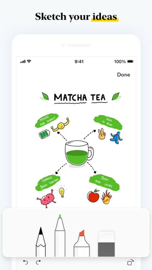 - Use Apple Pencil to handwrite and sketch your ideas