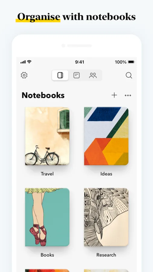 - Organize various notes into notebooks