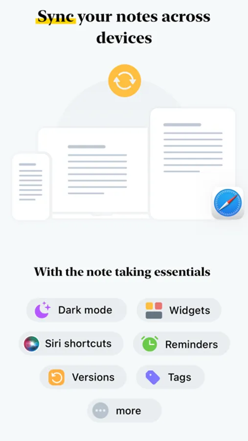 - Synchronize all your notes and notebooks across devices and to the cloud
