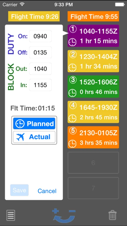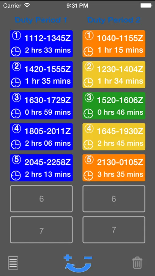 Simply enter the leg block times for the two duty days in question, and 10 in 24 does the rest. 10 in 24 will immediately alert you to regulatory conflicts through banners and color coding.