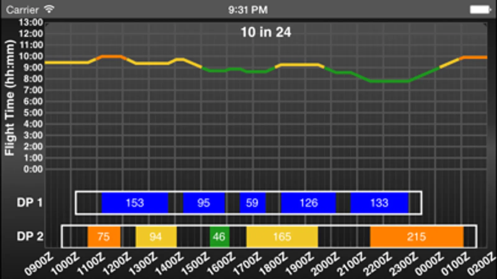 • Calculation of duty period, rest, flight time, and 10 in 24 limits