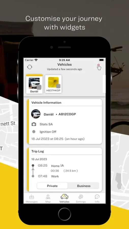 With our easy-to-use app, you can view your vehicle’s location, check its speed and odometer reading and contact us in an emergency via a handy slider. Share your journeys with loved ones when safety is a concern and use the In-App Car Guard feature to remotely lock the position of your vehicle and receive a movement notification. Our SARS-compliant trip reports help you accurately record business and private mileage.