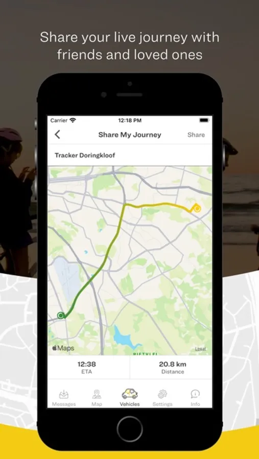 - Share real time updates of your journey with friends and family