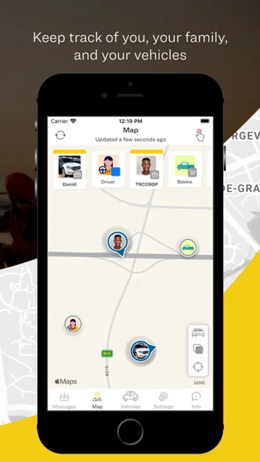 - Share your vehicle location with friends and family