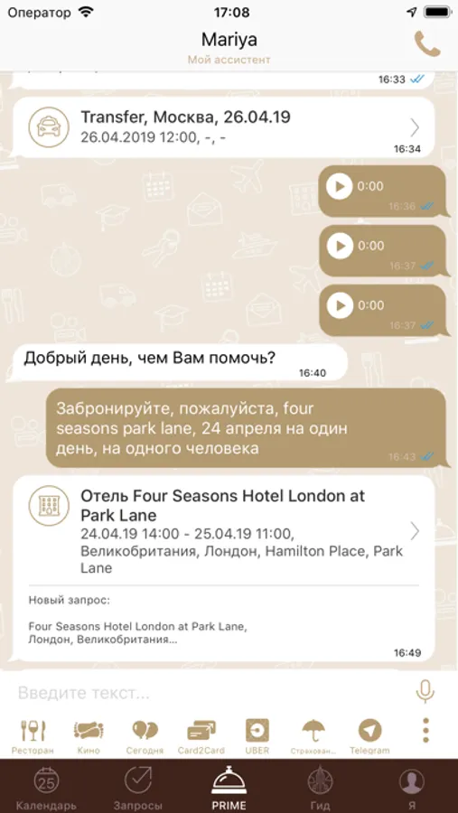 Мобильное приложение консьерж-службы PRIME.