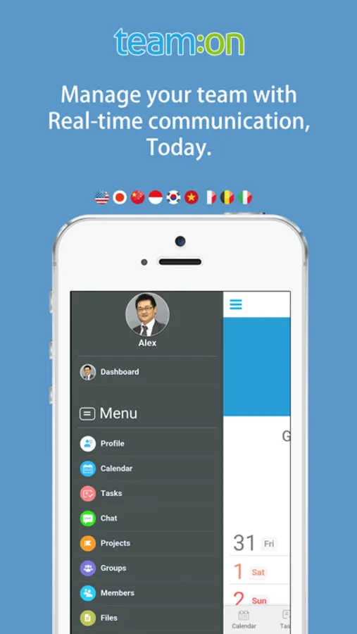TeamOn supports over 12 world languages, and is a Team Calendar (schedule manager), Team Task manager, Smart chat, Project manager, Group communication, and Document sharing unified work productivity cloud service for your everyday work needs.