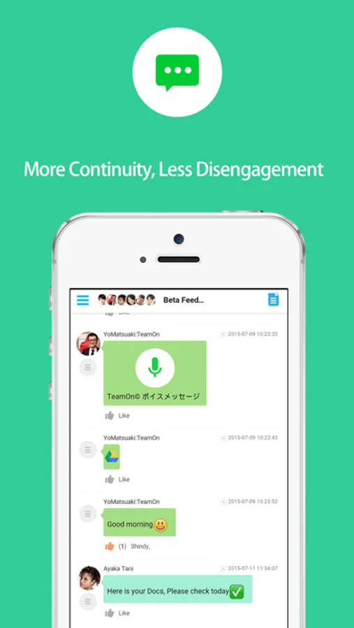 All of your chats with one simple click. It’s never been easier to cross communicate, invite new members, and collaborate on a shared file. Incorporation of a thumbs up button shows quick approvals within team members. Integration of Google Hangouts and Emoji means a broader audience and more ways for you to communicate.