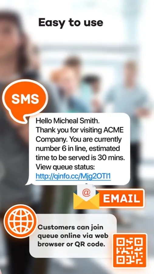 - Customers do not need to download anything, they will just click on the URL link to open a web page showing their queue status