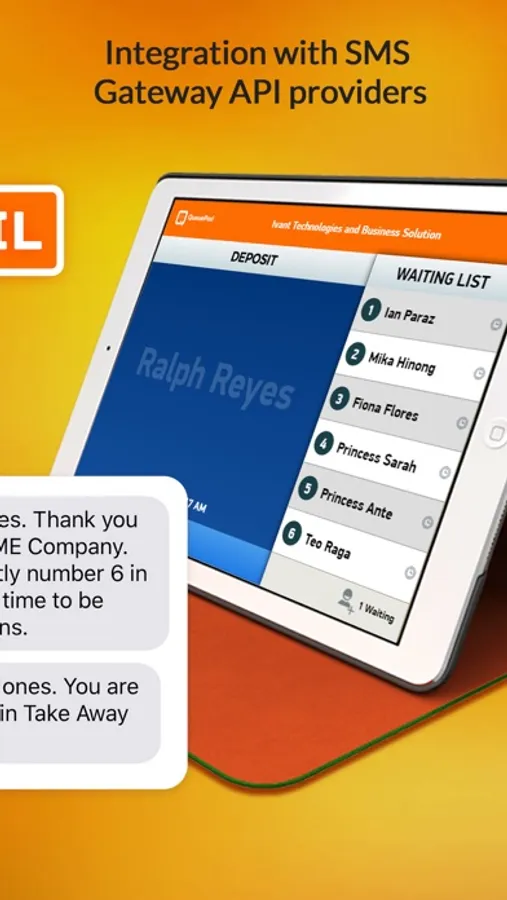 - Show via Smart TV / PC Monitor the list of customer names waiting in line