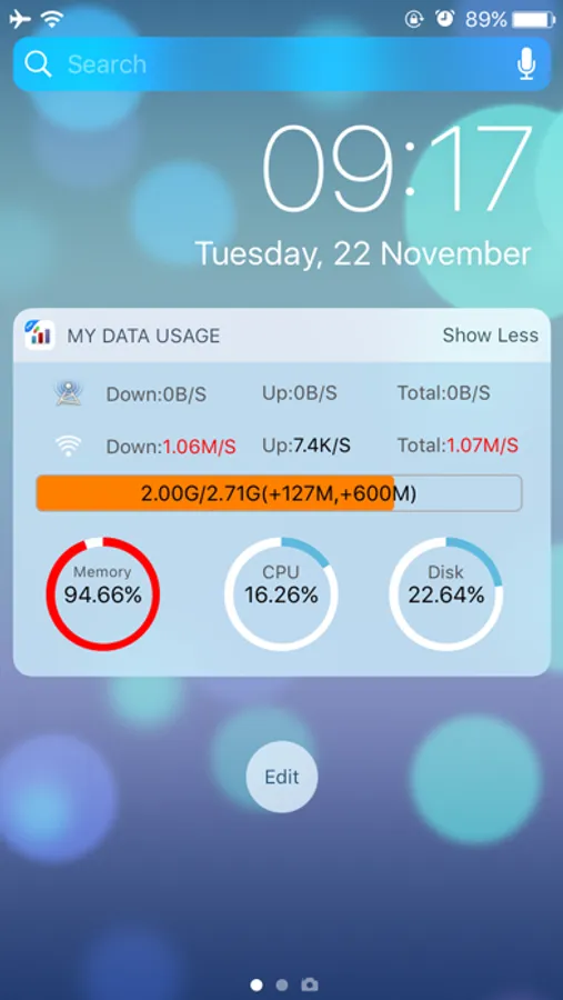 √ Widget provides color alarm function, when the traffic or memory, CPU, disk usage is greater than the certain value, it will be in a different color to warning.