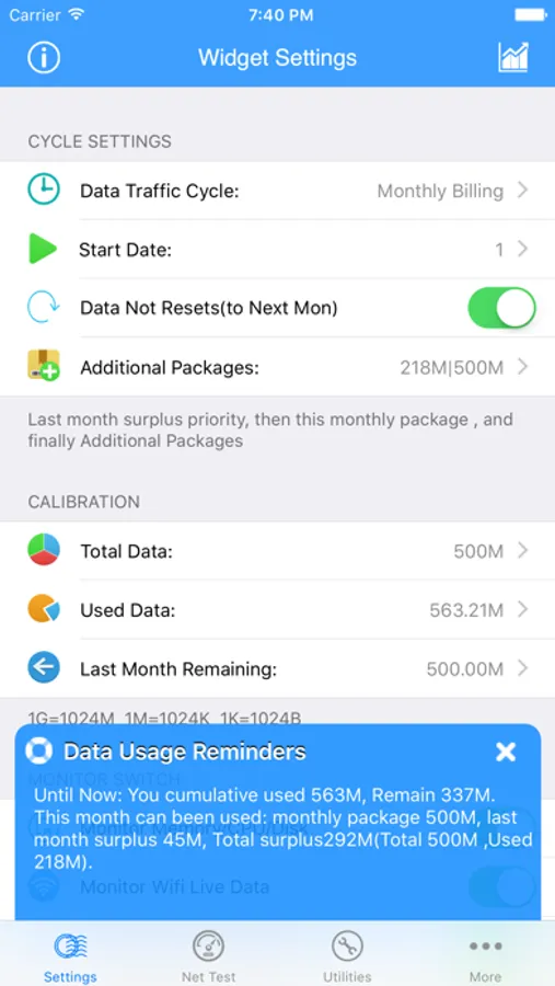 √ Set data quota and billing cycle information and let Data Usage worry about making sure you don’t pay for overages again.