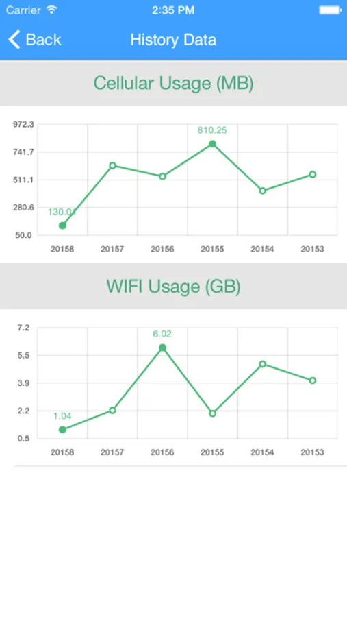 √ App graphically displays the history of Cellular and WiFi networks using data.