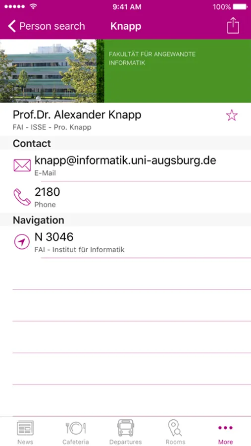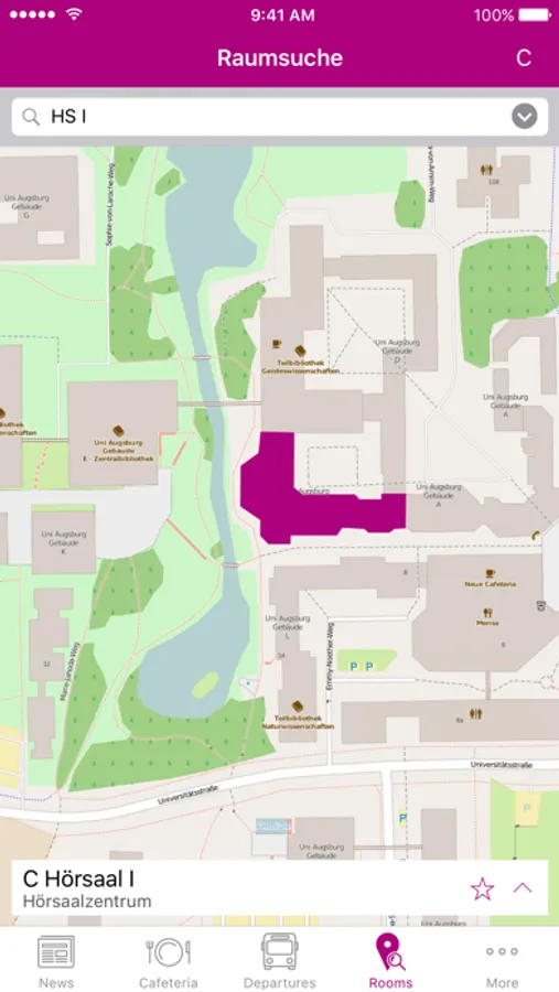 CampusApp makes the daily life of every student at University of Augsburg more convenient with useful features like a cafeteria menu, public transportation departure times, room- and staff-search and current news.