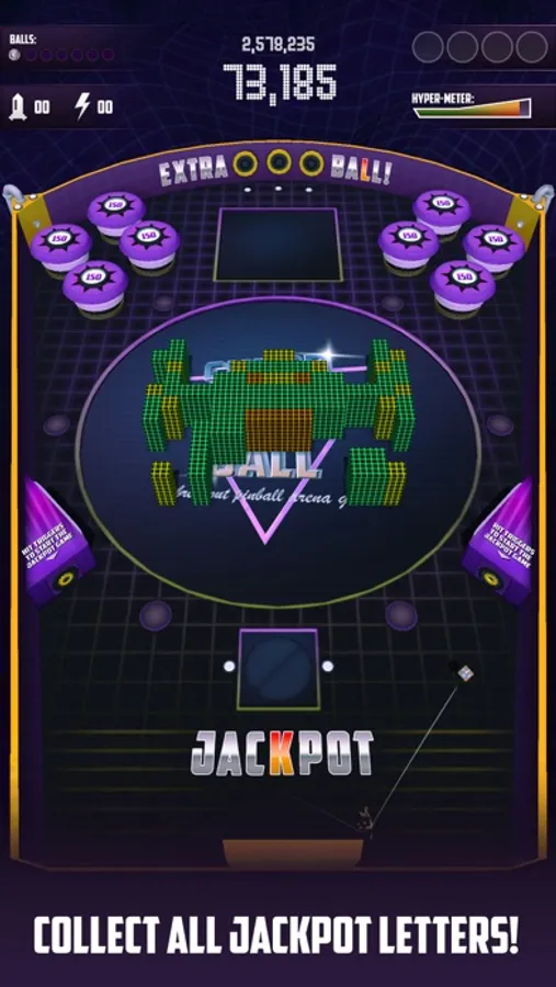 This mode is the main game, and plays the most like a classic pinball machine where you start with 3 Balls, and you have to work yourself towards the Jackpot platform, by beating all the mini-bosses/games to collect all the “JACKPOT” letters and get a high score!