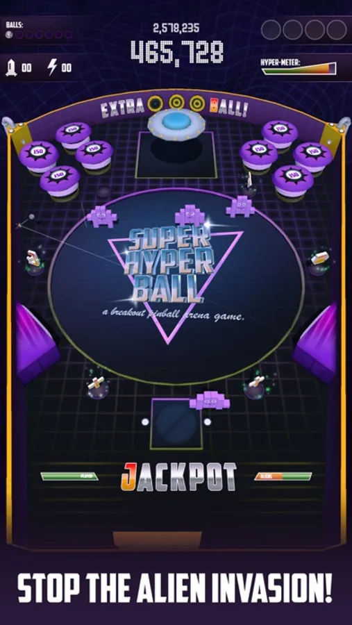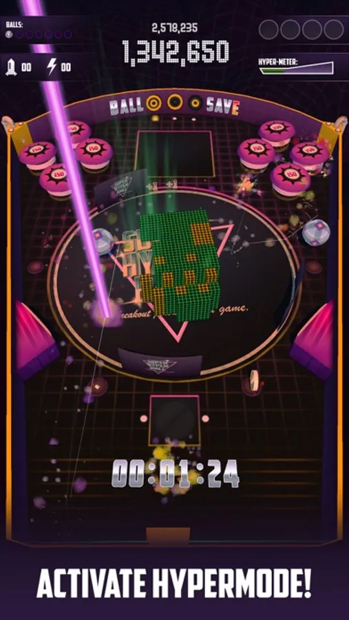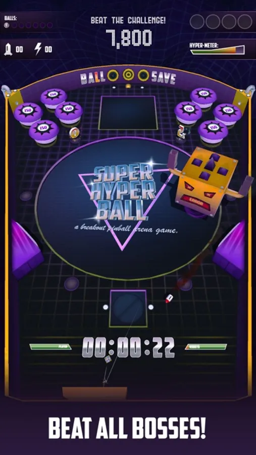 Super Hyper Ball is a hyperactive cocktail of Pinball & Breakout. Set in an 80s/retro themed table you compete against the world to get the highest score in 3 different game modes.