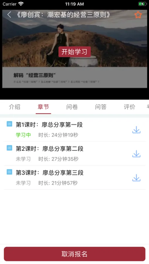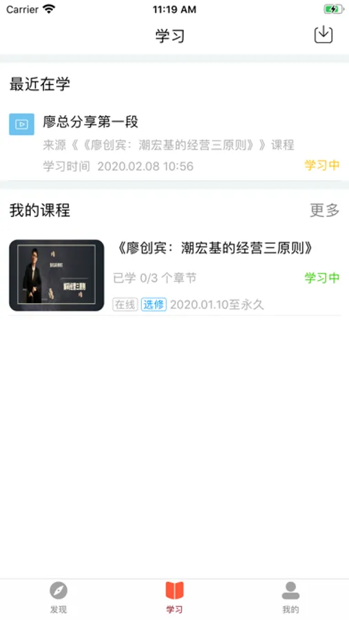 缓存:可将学习课程缓存到手机上,离线状态也能看课学习