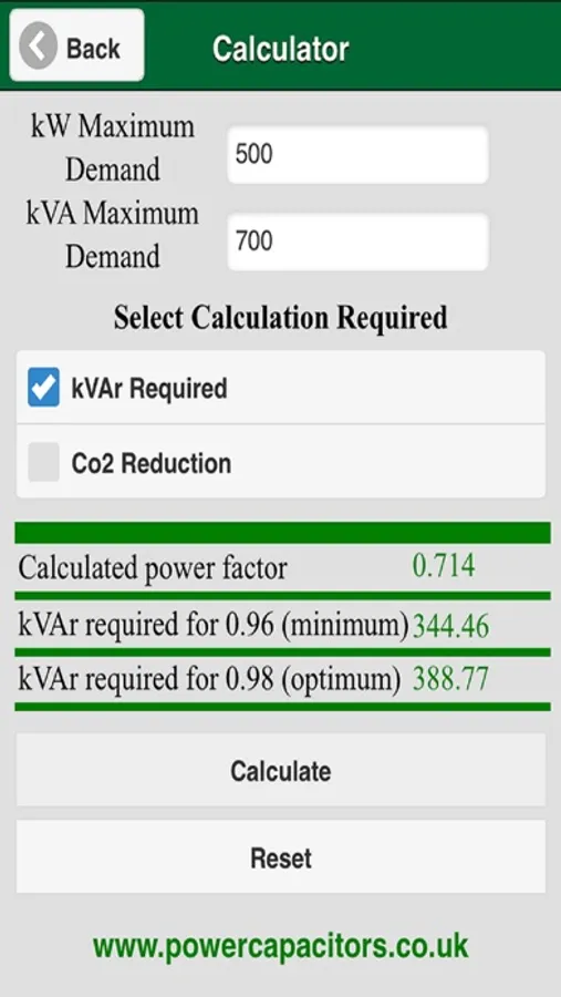 With this free app from power capacitors you can calculate your current electrical systems power factor rating, the kVAr correction required and the potential Co2 carbon savings per year. Saving on Co2 carbon emissions also saves you money.