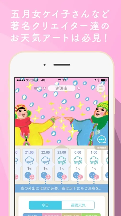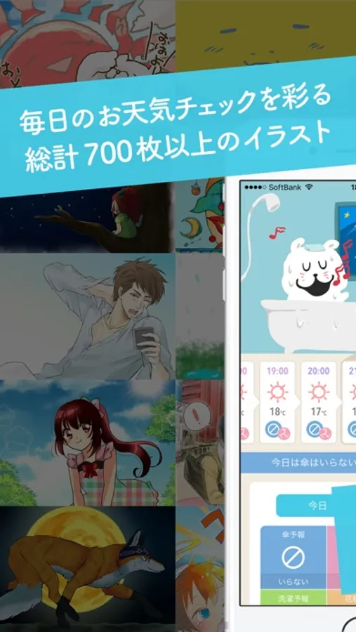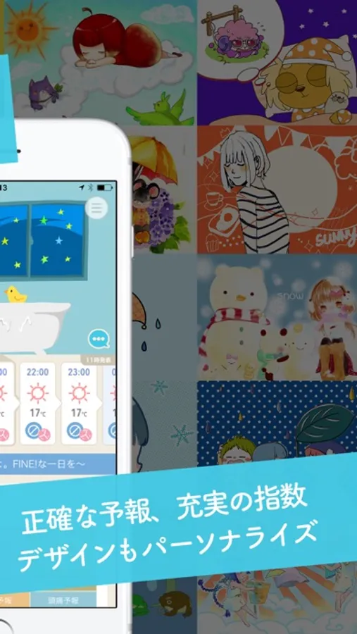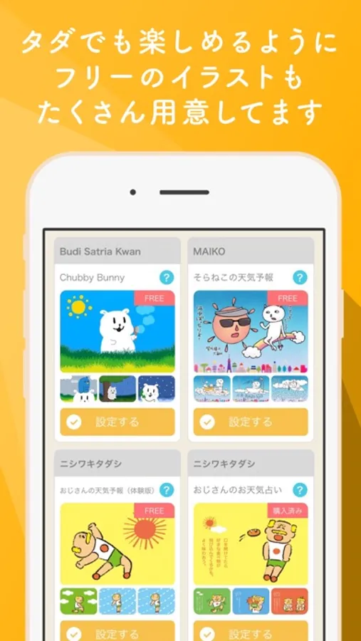 FINE! portray weather condition by various illustrations drew by famous Japanese illustrators. And you can choose some free our paid illustrations and set it.