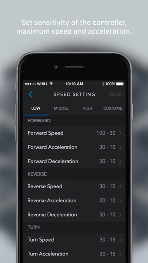 - Set sensitivity of the controller, maximum speed and acceleration. Take your customization to a whole new level.