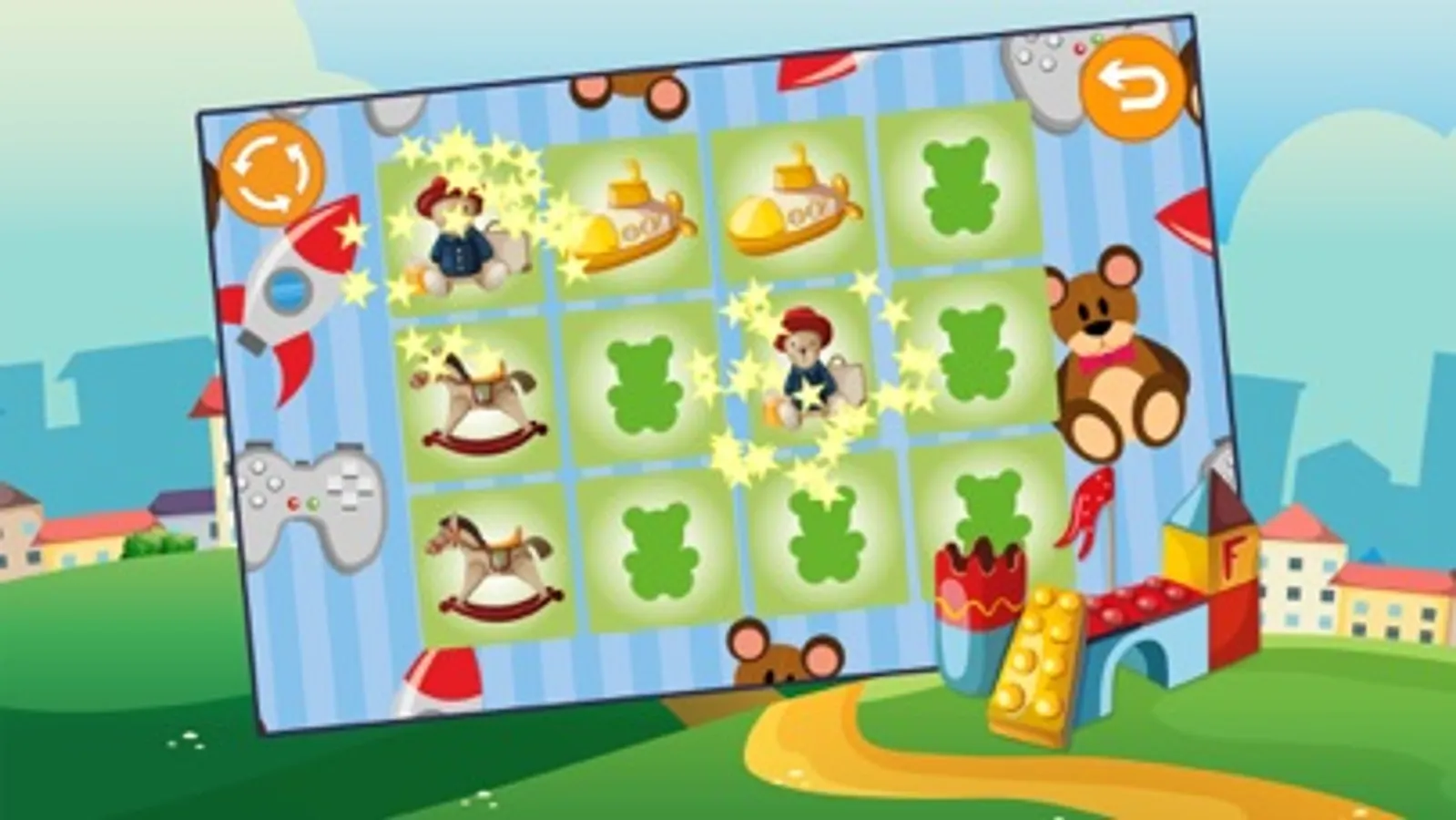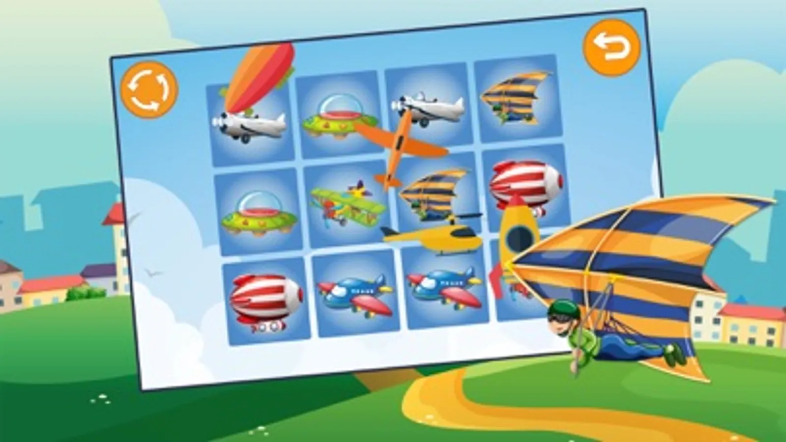 Hours of educational memory fun with 1000’s of Kids Memory Game levels with planes, jobs and toys!