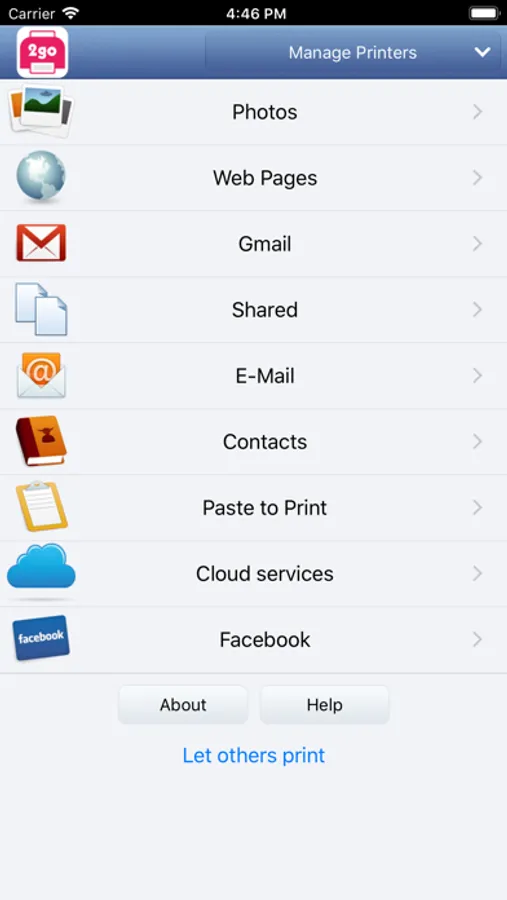 With Printer 2 Go Mobile you can print photos, web pages, emails, attachments, contacts and files saved to various cloud services.