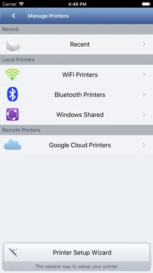 Most of the Wi-Fi printers are detected automatically. Printer 2 Go can print on such printers directly in case they are supported by the app.