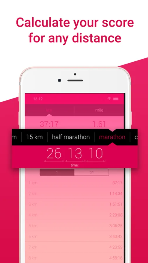 It'll convert pace to speed, kilometers to miles and will calculate your score in terms of any competition.