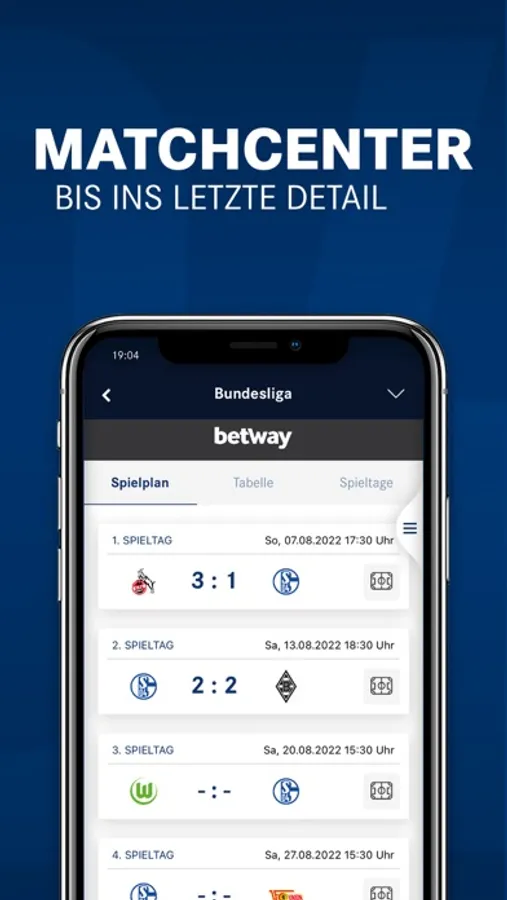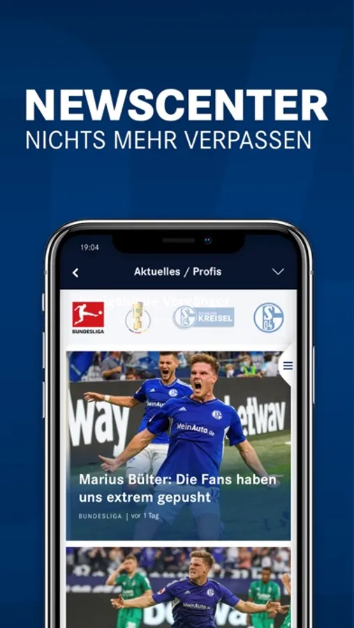 Welcome, Schalke fans! With the new official FC Schalke 04 app you can follow your club even more closely. With your phone you can watch the press conference ahead of the next game, find the quickest way to a kiosk in the stadium and get all the latest statistics during matches!