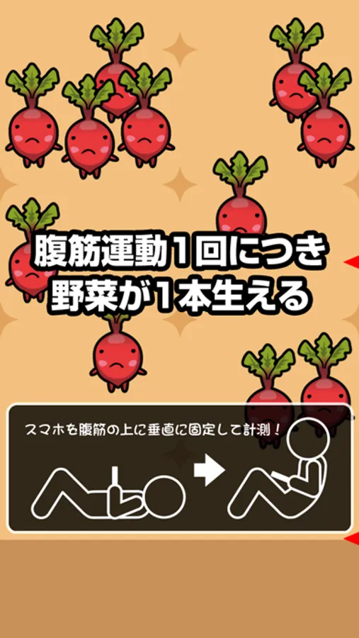 1回のカウントにつき1本の野菜が、腹筋畑から生えてきます!