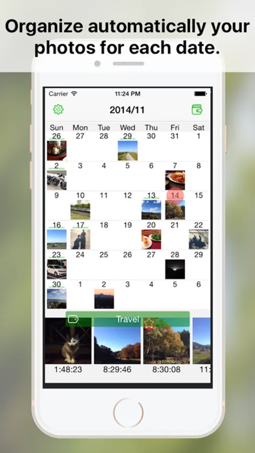 This app will display a calendar using the time stamp of the photo files. Therefore, when the time stamp has not been properly registered, you may photograph does not appear to the intended date. Photos taken with the iPhone is not probably problem, but there is a case to be a problem in photos such as digital cameras.