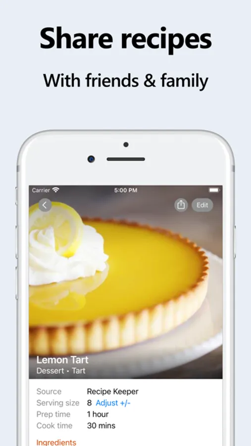 Share your recipes by email and to your favorite social networks. Create a shared family recipe collection. Add recipes from other Recipe Keeper users with a single tap.