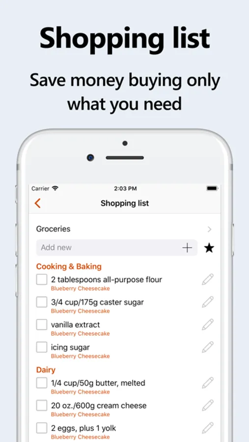Fully featured shopping list that automatically groups your items by aisle. Save money by only buying what you need. No more trips back to the store for that one thing you forgot.