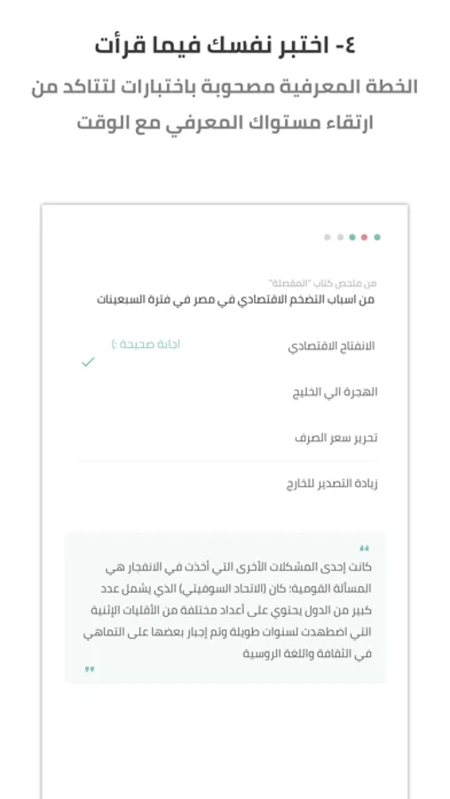 - اشتراكك يدعمنا لتطوير التطبيق و يساعدنا علي اضافة المزيد من افكار الكتب و الاختبارات كل شهر.