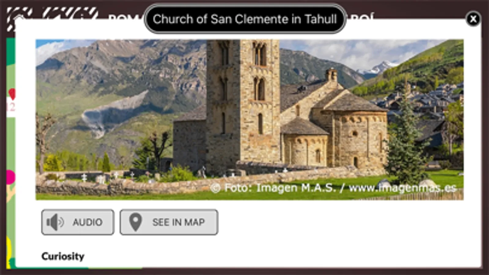 A handy guide and an audio app of the Romanesque ensemble of churches of la Vall de Boí (Valley of Boí) in the province of Lleida, in a one device, your own phone!. Entertaining and intuitive, the only way to know each church and their interiors and paintings during your visit. You will also have a memory forever of what you've seen and it costs less than a cup of coffee.