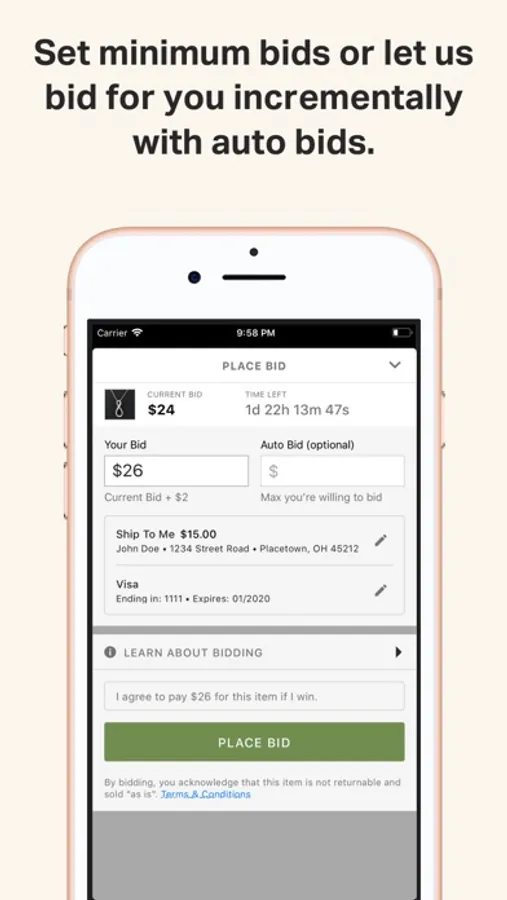 - Option to set a maximum bid for an item, allowing automatic bidding
