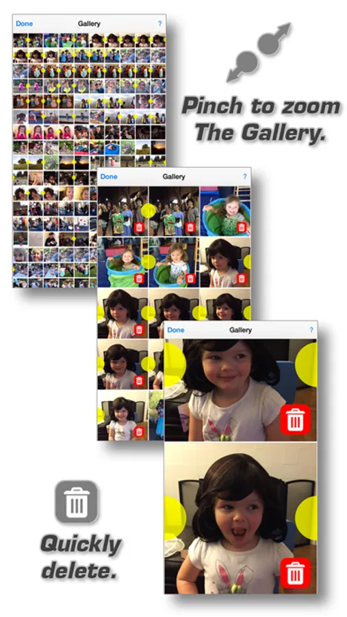 With our dynamic Gallery, you can see all of your photos at the size that's right for you. Identifying duplicate or similar photos is easy, and deleting unwanted photos is a snap (actually, a tap).