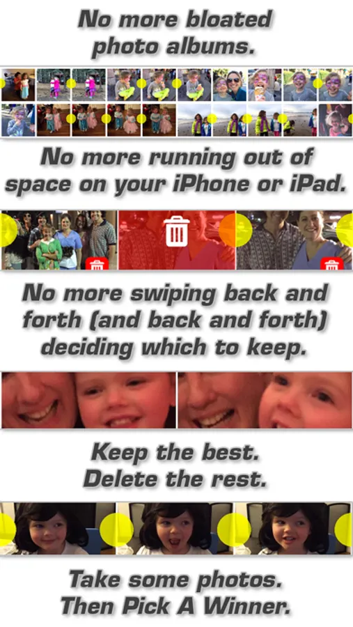 Use Pick A Winner to quickly and easily remove unwanted, redundant, or duplicate photos from your photo library.