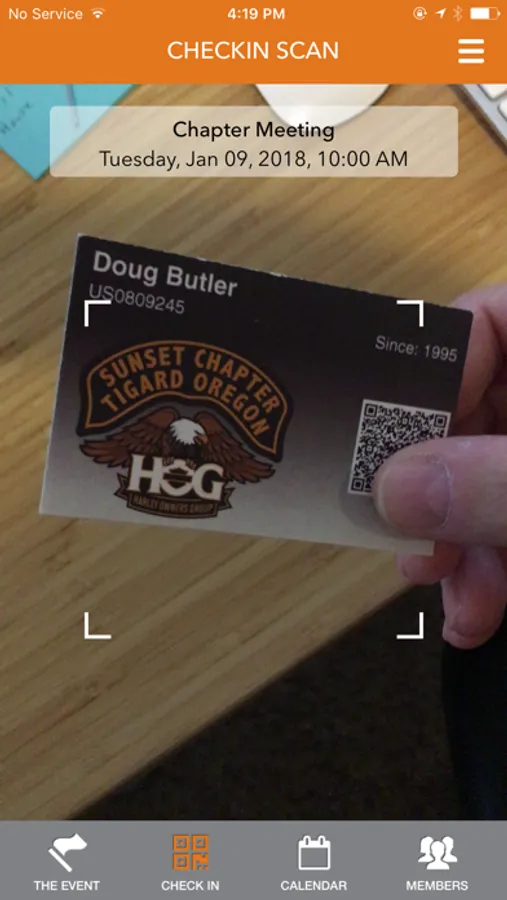 HOG[SCAN] is used by H.O.G.® Chapter Officers to perform check-ins at Chapter events and rides. Chapter Members can use the app to view the Chapter calendar, RSVP to events, or to present their “Virtual Membership Card” for fast and easy checkins at Chapter events.
