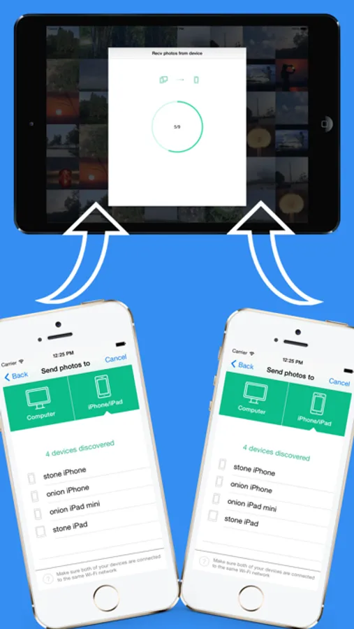 ● Transfer any number of photos between iOS devices (iPhone, iPad and iPod Touch)